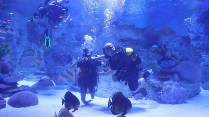 İstanbul’da bir AVM’de gerçekleşen programda; görme, işitme, konuşma, fiziksel, zihinsel ve süreğen engel grubundan Bağcılar Belediyesi Su Altı ve Su Üstü Sporları Kulübü engelli öğrencileri, engelsiz dalış yaptı. Dalgıç kıyafetlerini giyen engelliler, profesyonel eğitmenler eşliğinde su altında dalış deneyimi yaşadı. Akvaryum içinde yüzen dalgılar, su içinde Türk bayrağı açtı.