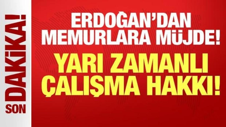 Cumhurbaşkanı Erdoğan, çocuğu olan memurlara yarı zamanlı çalışma hakkının getirildiğini söyledi.