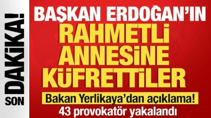 İçişleri Bakanı Ali Yerlikaya, İstanbul Saraçhane'deki gösteri sonrası Cumhurbaşkanı Recep Tayyip Erdoğan'a, merhum annesine ve ailesine yapılan hakaretlerle ilgili gerekli işlemlerin başlatıldığını bildirdi.