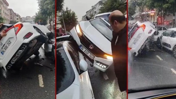 Araç iddiaya göre caddede hızla ilerlediği sırada park halindeki otomobilin üzerine uçtu.