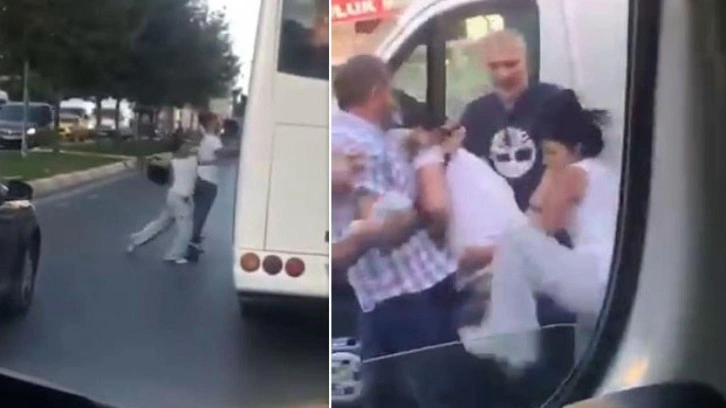 İddiaya göre, servis aracı yol verme tartışması nedeniyle caddede ilerleyen motosikletli çifti trafikte sıkıştırdı. Servis şoförü motosikletli sürücüye yol vermemek için aracını motosikletin üzerine sürdü. Servis aracına sinirlenen motosikletin arkasındaki kadın, motosikletten atlayıp kask ile servis aracına saldırdı. O anlar çevredeki bir vatandaşın cep telefonu ile görüntülendi. Görüntülerde, motosikletliyi sıkıştıran servis aracının o anları ve motosikletli kadının kaskla servise vurduğu anlar yer aldı. Servis aracının şoförünün de demir çubukla aşağı inmesiyle kavgaya tutuşan taraflar çevredeki vatandaşların araya girmesiyle güçlükle ayrıldı.