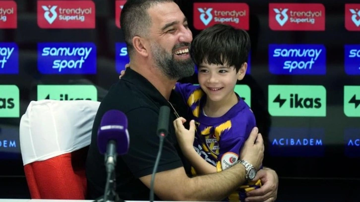 Arda Turan, eflatun-sarılı ekibin başında çıktığı son basın toplantısına oğlu Hamza ile birlikte çıktı.