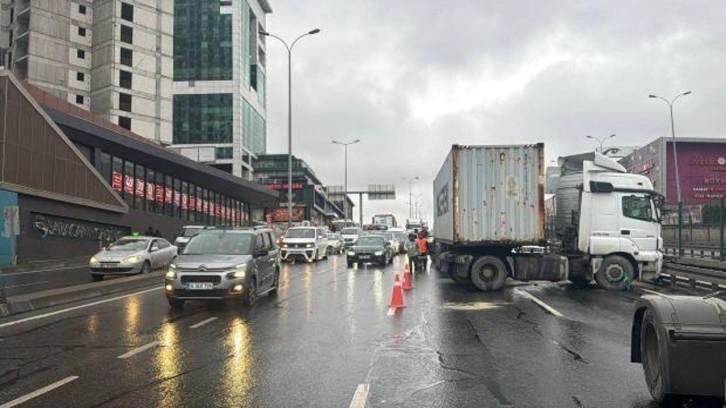 İstanbul Beylikdüzü'nde D-100 kara yolu Ankara istikametinde Tahir K. idaresindeki 34 FD 3799 plakalı tır, sürücüsünün direksiyon hakimiyetini kaybetmesi sonucu makaslayarak metrobüs yolundaki bariyerlere çarptı.