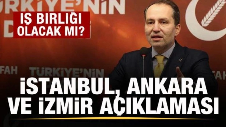 Erbakan, yerel seçimde iş birliği görüşmeleriyle ilgili de "Tabii bu görüşmeler, 2 görüşme halinde bugüne kadar gerçekleştirildi. Bir tanesi de en son dün akşam gerçekleşti. AK Parti heyeti, genel merkezimize ziyarette bulundu. Önceki görüşmede de bizim heyetimiz AK Parti genel merkezine gitmişlerdi. Pazartesi günü, son bir görüşme yapılmış olacak, pazartesi günü durum netleşmiş olacak. Bizim buradaki hedefimiz sadece Ankara, İstanbul ve İzmir'de büyükşehir belediye başkanlığı seçimlerinde bir ittifak noktasındadır. Yani herhangi bir ittifak olmasında, herhangi bir ilimizi, ilçemizi buralar dışında etkilememektedir. 450 beldede, 900 ilçede ve diğer illerimizde tamamen kendi adaylarımızla, kendi logomuzla seçimlere gireceğiz, bunda bir değişiklik olması söz konusu değil. Bugüne kadar ilan ettiğimiz 200'ün üzerinde adayımızın devam edeceği açık bir şekilde ortada. Pazartesi günü, büyükşehir belediye başkanlığı için bir işbirliği olur mu olmaz mı onun netleşmesi söz konusu olacak. Eğer bir anlaşma olmazsa bizim Ankara, İstanbul ve İzmir'de de belediye başkan adaylarımızla seçimlere gireceğiz. Bu konuda da hazırlıklarımız var" değerlendirmesinde bulundu.