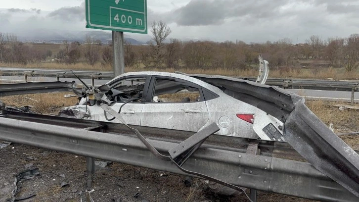Kontrolden çıkan otomobil, bariyerlere adeta ok gibi saplandı. Tavanı ve motoru kopan aracın sürücüsü, otomobilde sıkışarak ağır yaralandı.
