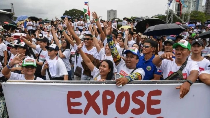 Filipinler'in başkenti Manila'da on binlerce kişi, sel kontrol projeleri için ayrılan bütçelerdeki usulsüzlük iddialarına ilişkin yolsuzluk skandalını protesto etti.