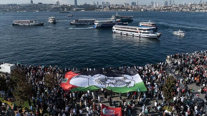 Ankara Filistin Dayanışma Platformu'na (ANFİDAP) mensup sivil toplum kuruluşlarının çağrısıyla on binlerce kişi başkentte Filistin'e destek yürüyüşü yaptı.