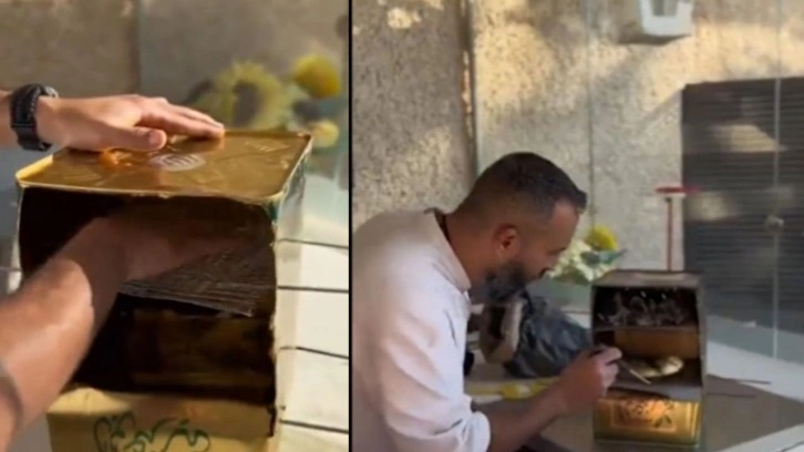 Filistinli şef, İsrail zulmü sonucu oluşan imkansızlıklar nedeniyle yağ kutusunu fırına dönüştürerek böyle ekmek yaptı.