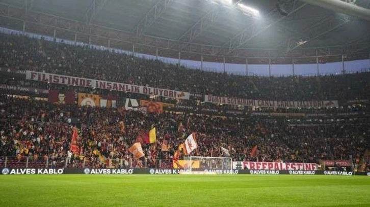 Galatasaraylı taraftarlar İsrail'e teoki göstermek adına Filistin lehine pankart açtı.