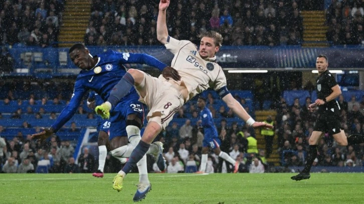 Şampiyonlar Ligi'nin 3. haftasında Galatasaray'ın rakiplerinden Ajax, Chelsea deplasmanına konuk oldu. Hollanda ekibi, sahadan 5-1 mağlup ayrıldı.Chelsea'nin gollerini 18'de Guiu, 27'de Caicedo, 45'te penaltıdan Enzo Fernandez, 45+6'da penaltıdan Willian ve 48'de Tyrique George kaydetti.Ajax'ın tek golünü ise 33'te penaltıdan Weghorts attı.Ajax'ta Kenneth Taylor 17'nci dakikada kırmızı kart gördü ve Galatasaray maçında cezalı duruma düştü. Kaynak: HABER7.COM #ESHAHABER.COM.TR #haber #gündem #sondakika #news #press #worldnews