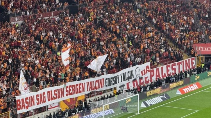 Galatasaray taraftarı, “Başın Sağ Olsun Sergen Yalçın! Gürsoy Yalçın” pankartı açtı.