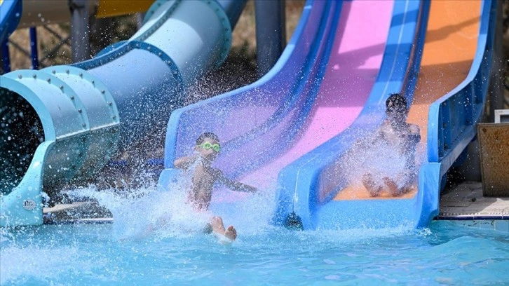 Gaziantep'te hava sıcaklığının 40 derece ölçüldüğü kentte sıcaktan bunalan vatandaşlar, havuzlarda yoğunluk oluşturdu.