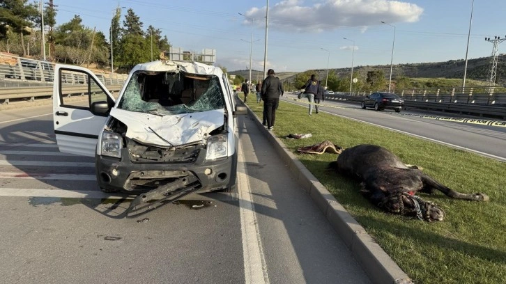 Aracın ön camından içeri giren at telef olurken, araçta bulunan polis memurları Sefa A. ve Ersin B. yaralandı.