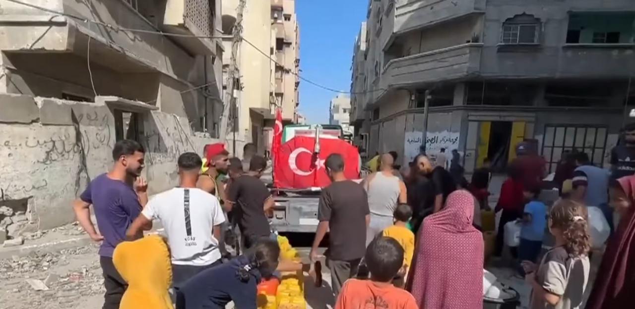 Ateşkesin ardından Gazze’deki altyapı ve gıda dağıtımı çalışmalarında sık sık Türk bayraklı ekipmanlar dikkat çekiyor.