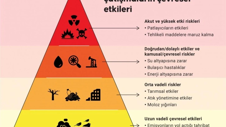3. Saldırıların yol açtığı moloz yığını, atık yönetimi ve tarımsal etkiler gibi orta ve uzun vadeli risklerin yer alır.