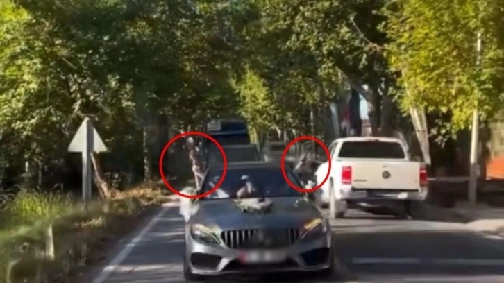 Oluşturulan düğün konvoyunun önündeki otomobilde bulunan gelin ve damat, Termal yolu üzerinde araçtan çıkardıkları tabancalarla aynı anda havaya rastgele ateş etti. Gelin ateşlediği silahı iki eliyle tutarken, damat bir eli ile direksiyonu kullandı, bir eliyle de tabanca ile ateş açtı.