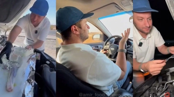 Etin pişerek yenebilir hale geldiğini gören sürücü, çatalla eti ayırdı ve afiyetle yedi.