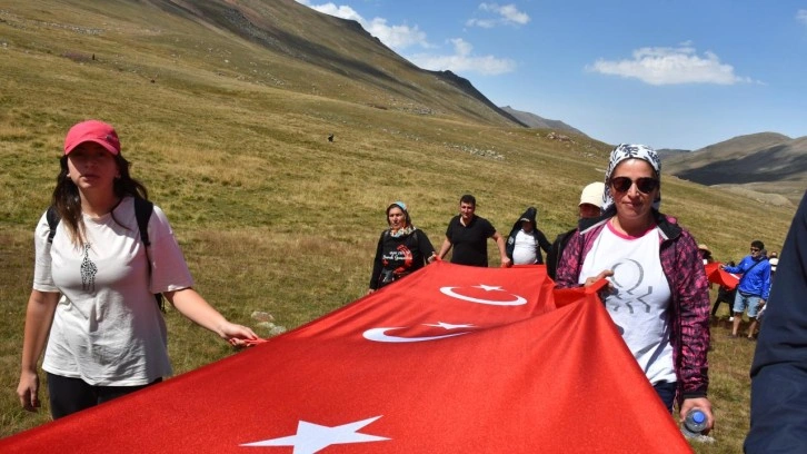 Merkeze bağlı 3 bin 82 rakımlı Deveboynu Yaylası'nda bir araya gelen Gençcelep'in yakınları ve vatandaşlar, Türk bayrağıyla yaklaşık 5 kilometre yürüyerek Yurt önü mevkisine geldi.