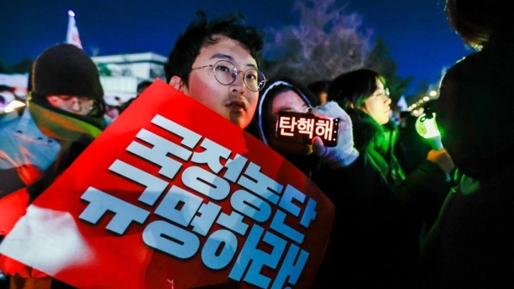 Güney Kore'nin başkenti Seul'de bir araya gelen vatandaşlar, 3 Aralık'ta Devlet Başkanı Yoon Suk Yeol tarafından ilan edilen birkaç saatlik sıkıyönetimin ardından Başkan Yeol'u protesto etmek için düzenlenen gösteriye katıldı.