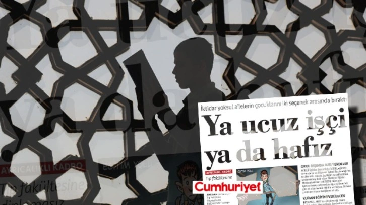 Cumhuriyet gazetesinin “İktidar yoksul ailelerin çocuklarını iki seçenek arasında bıraktı: Ya ucuz işçi ya da hafız” başlıklı haberinde Milli Eğitim Bakanlığı’nın uygulamalarına ateş püskürüldü. Cumhuriyet haberinde, çocukların küçük yaşta mesleki veya manevi donanım kazanacağı uygulamalar gerçek dışı ithamlarla hedef alındı.