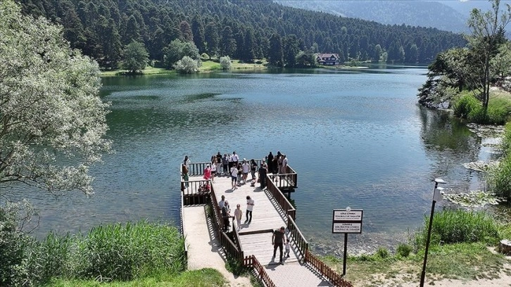 Günübirlik tatil için tabiat parkına gelenler, serin havanın ve güzel manzaranın tadını çıkardı.