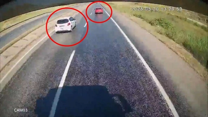 Öte yandan kaza, bir otobüsün araç içi kamerasına yansıdı. Görüntülerde, kırmızı renkli otomobilin önce sağ şeride, önüne bir TIR çıkınca da aniden sol şeride geçtiği, arkasından gelen Fatma D. idaresindeki otomobilin de çarpmamak için manevra yaptığı anlar yer aldı.