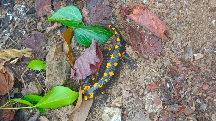 Dörtyol ilçesinde bulunan Üçkoz yaylasındaki evinde bahçe düzenlemesi yapan Bestami Ateş, çalıların arasında hareketsiz şekilde sarı benekli semenderi fark etti.