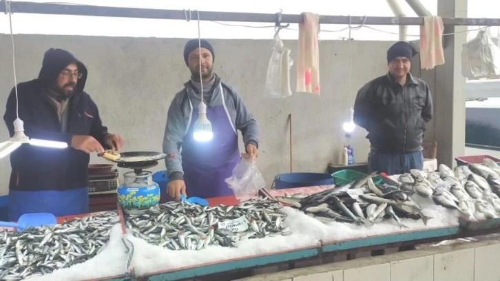 Havanın soğuması ve kar yağışıyla birlikte bol avlanan hamsinin kilosu 50 liraya, istavritin kilosu ise 70 liraya kadar düştü. Balık fiyatlarının düşmesi üzerine vatandaşlar balık tezgahlarına akın etti.