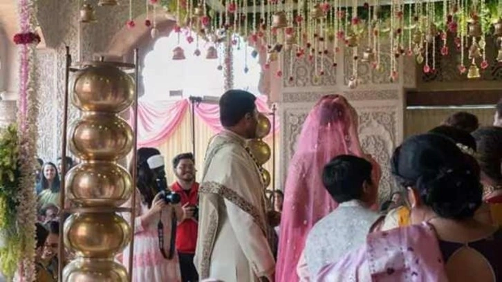 Hindistan'da düzenlenen düğün, ilginç anlara sahne oldu.