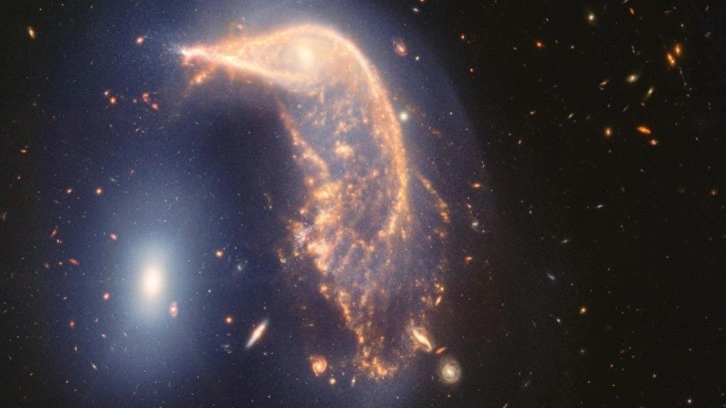 ABD Havacılık ve Uzay Ajansının (NASA) Avrupa Uzay Ajansı (ESA) ve Kanada Uzay Ajansı (CSA) ile ortak çalışmasının ürünü olan James Webb Uzay Teleskobu, 326 milyon ışık yılı uzaklıkta, mavi yıldızlar ve gaz bulutuyla çevrili iki galaksiyi fotoğrafladı.
