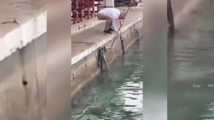 Deniz kenarında bir iskelenin alt kısmında mahsur kalan kedi çevredeki bir kişi tarafından kurtarılmaya çalışıldı. Kediyi kurtarmak için gelen adam eline aldığı akvaryum kepçesi ile kediyi bulunduğu yerden almayı denese de kedi kendini serin suların içerisine attı. Soğuk suya giren kedi çıkacak yer bulamayınca tekrar eski konumunun yolunu tuttu. Pes etmeyen adam hayvanın bütün inadına rağmen süzgecin de yardımıyla kediyi karaya çıkartmayı başardı.