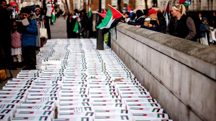 Başkentte toplanan Filistin yanlısı grup, İsrail saldırılarında öldürülen Filistinli çocukların anısına Başbakanlık Konutu’nun bulunduğu sokağın dışına 450'den fazla sembolik çocuk tabutu bırakarak, İsrail’in Gazze Şeridi’ne yönelik saldırılarını protesto etti.