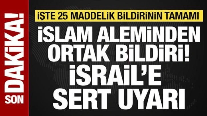 Katar’ın başkenti Doha'da düzenlenen İİT - Arap Birliği Olağanüstü Ortak Zirvesi'nin ardından yayımlanan bildiride, “İsrail’in Katar’ın başkenti Doha’da düzenlediği korkakça ve yasa dışı saldırıyı en şiddetli şekilde kınıyoruz. Bu saldırının tüm Arap ve İslam devletlerine yönelik bir saldırı olduğunu teyit ediyoruz.” ifadelerine yer verildi.