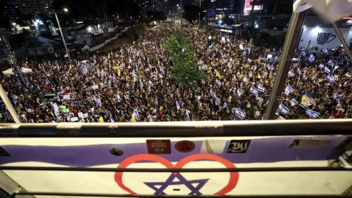 İsrail'de devam eden hükümet karşıtı gösterilerde, “Bu kadar kan dökmek yeter, masada bir anlaşma var!” sloganları atan binlerce kişi, Netanyahu'dan Gazze Şeridi'nde ateşkes ve esir anlaşmasının kabul edilmesini talep etti.