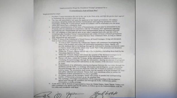 Anlaşma, savaşın sona erdirilmesi, askeri operasyonların durdurulması, İsrail güçlerinin çekilmesi, rehinelerin serbest bırakılması ve insani yardım akışının yeniden başlatılmasını öngörüyor.