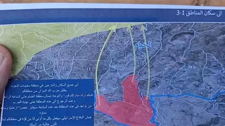 "Hizbullah sizin bölgenizden atış yapıyor. Evlerinizi derhal terk ederek saat 16.00'ya kadar kuzeydeki Hiyam köyüne doğru ilerleyin. Bu vakitten sonra burada kalan herkes terörist sayılacaktır."