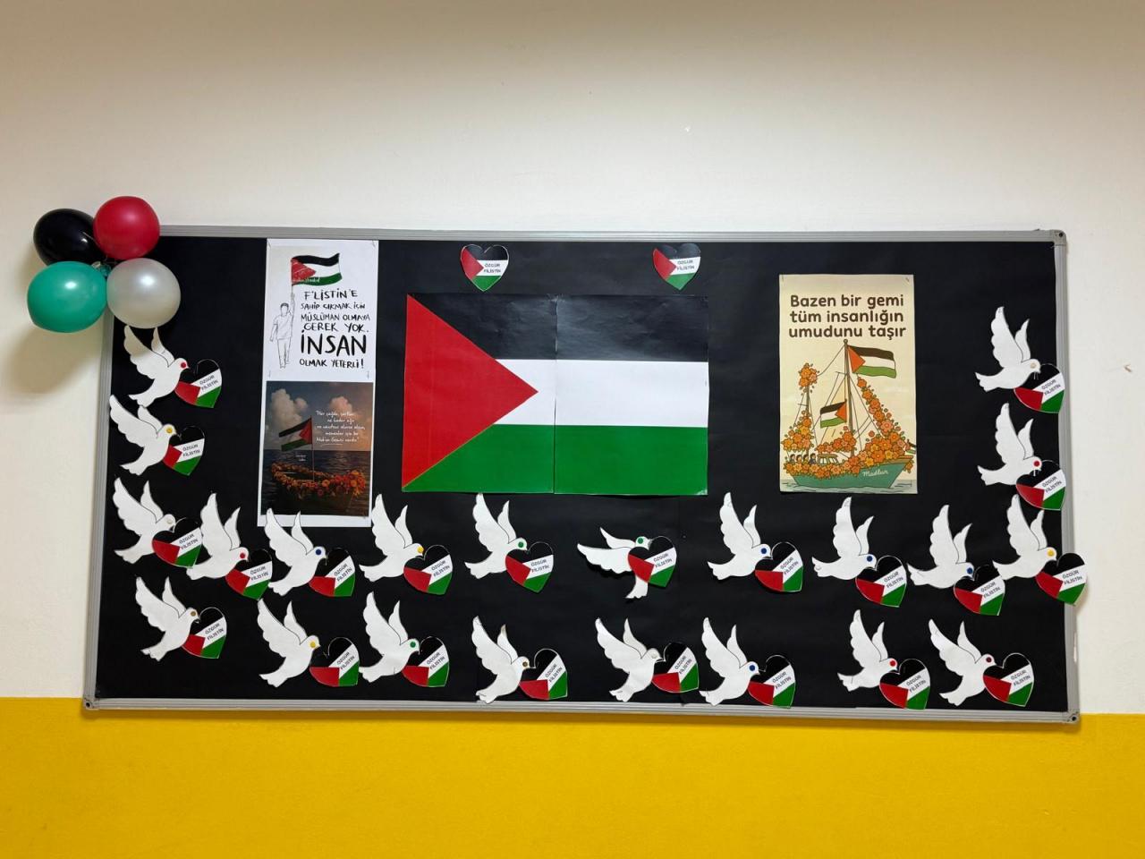 “Mazlumun yanında olmak, medeniyetimizin en kadim şiarıdır. Filistin halkı, zulme karşı onurla direnerek dünyaya büyük bir ders verdi.Bugün burada öğrencilerimizin sergilediği bu duyarlılık, insanlığın umudunu yeniden yeşertiyor. Bizler, haksızlık karşısında susmamanın, kalemle, sanatla, emekle mücadele etmenin sorumluluğunu taşıyoruz.”