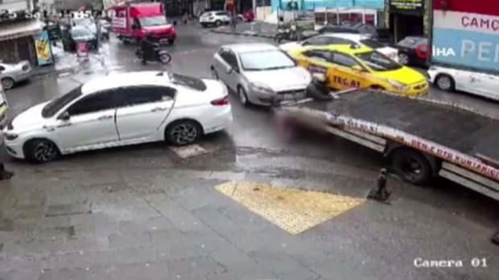 Motosiklet sürücüsü, çarpmanın etkisiyle sürüklenerek park halindeki çekici ile otomobil arasında ezildi. Yaralanan moto kurye hastaneye kaldırılırken, otomobil sürücüsü gözaltına alındı.