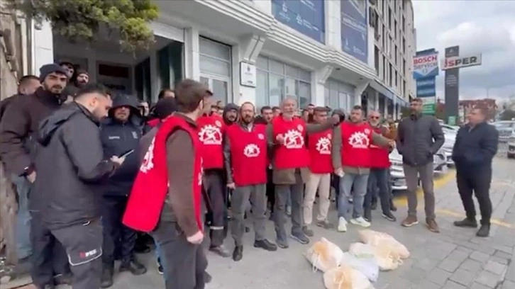 Eyüpsultan'daki İSPER AŞ Genel Müdürlüğü önünde toplanan işçiler, "Enerji işçisi köle değildir.", "İşçiyiz, haklıyız, kazanacağız." sloganları attı.