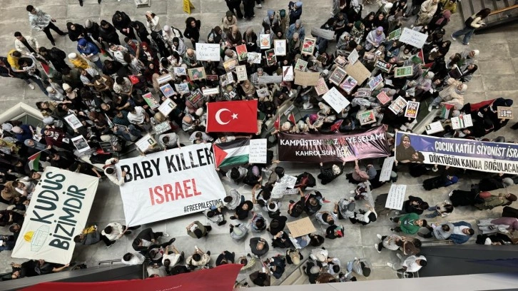 İsrail'e destek veren firmaların kapatılması çağrısında bulunan öğrenciler, Filistin meselesinin yalnızca Filistin'in ve Orta Doğu'nun değil tüm insanlığın dramı olduğunu belirtti.