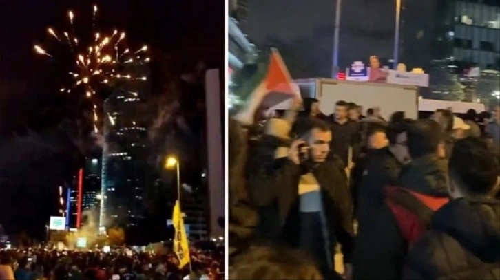 devam ederken, akşam saatlerinde kalabalık bir grup İstanbul'da İsrail Konsolosluğu önünde bir