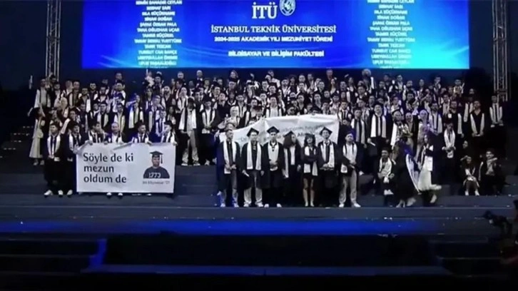 İTÜ Rektörlüğünden yapılan açıklamada, "Ülkemizin ve dünyanın geleceğini şekillendirecek 2024-2025 akademik yılı mezunlarımızı büyük bir gurur ve coşkuyla uğurladığımız mezuniyet törenimiz, öğrencilerimiz ve değerli aileleri için unutulmaz bir anı olarak kalbimizde yer etmiştir. Yıllar süren emek, azim ve başarının taçlandığı bu özel günde, aramıza yeni katılan tüm mezunlarımızı İstanbul Teknik Üniversitesi ailesi olarak bir kez daha yürekten tebrik ediyoruz. Törenimizin temel amacı bu büyük coşkuyu paylaşmaktı. Ancak bu süreçte yaşanan ve üniversitemizin temel değerleri üzerine yeniden düşünmemizi gerektiren bazı gelişmeleri de kurumsal bir olgunlukla ele almak sorumluluğumuzdur. Üniversitemiz eleştirel düşüncenin ve farklı fikirlerin özgürce ifade edildiği, toplumsal değerlere ise azami saygı gösteren bir kurumdur. Mezuniyet törenimizde savunduğumuz değerlere tamamen aykırı şekilde, bir grup mezun öğrencimizin açtığı ve kutsal kitabımız Kur'an-ı Kerim'den bir ayetin yer aldığı pankartın fiziki müdahaleyle engellenmeye çalışılması, kabul edilemez bir tahammülsüzlük örneğidir. Bu konuda üniversitemiz tarafından tüm hukuki süreçler titizlikle yürütülecektir." ifadelerine yer verildi.