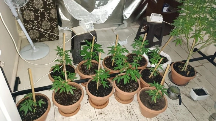 Yapılan teknik ve fiziki takibin ardından düzenlenen operasyonda; saksılar içerisinde üretilen 12 esrar bitkisi ile bu bitkiyi yetiştirmek için kullanılan ısı ve ışık sistemi, 1435 uyuşturucu hap, satışa hazır biçimde toplam 359 gram esrar, hassas terazi, çeşitli telefon numaralarının bulunduğu defter, 1 tabanca ve bu tabancaya ait 13 fişek, 3 trafo, 5 özel yapım ampul, kablo sistemi, güneş ışığını engelleyici özel perde, 5 mekanik zaman saati ile aynalı reflektör ele geçirildi.