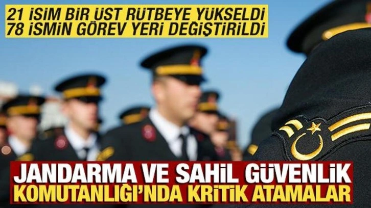 Cumhurbaşkanı Recep Tayyip Erdoğan'ın imzasıyla yayımlanan atama kararına göre, tümgeneral Yusuf Kenan Topcu korgeneralliğe, tuğgeneraller İdris Tataroğlu, Tarık Hekimoğlu, Emrullah Büyük, Ali Gemalmaz ve Zafer Tombul tümgeneralliğe, jandarma kıdemli albaylar Cafer Öz, Tamer Bilacan, Sabri Küyük, Aydın Kutlu, Alpaslan Doğan, Alper Çetinkaya, Nejdet Karaca, Ali Naci Aldemir, Gülden Mat Şakir, Zafer Özden, Sedat Kara, Tolga Çemrek, Serhan Varol, Barış Soyal ile jandarma pilot kıdemli albay Ekrem Pala tuğgeneralliğe terfi ettirildi.