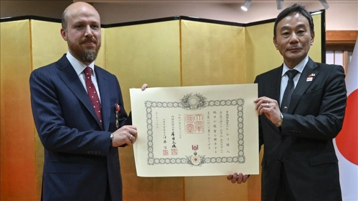 Konuşmaların ardından Büyükelçi Katsumata, Bilal Erdoğan’a "Altın Işıklar, Yükselen Güneş Nişanı ve Rozeti"ni takdim etti.