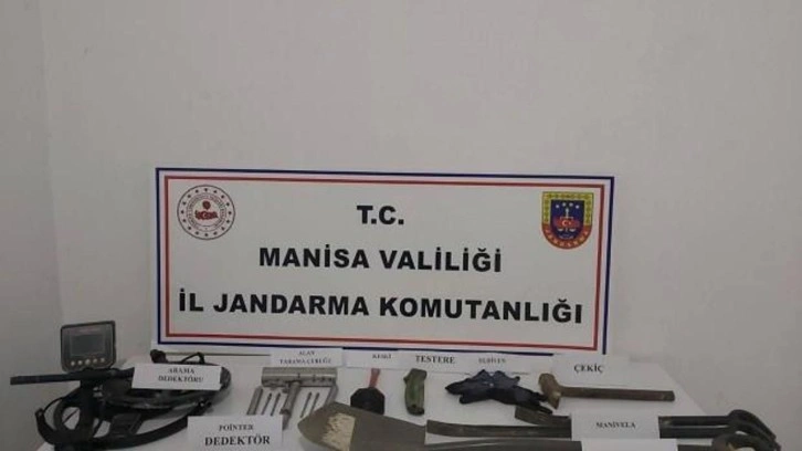 Manisa'nın Yunusemre ilçesi Yaylaköy Mahallesinde alınan ihbar üzerine harekete geçen jandarma ekipleri tarafından, şüpheli G.K. (45/E) ve M.Y.A. (46/E) kaçak kazı yaptıkları esnada suçüstü yakalandı.