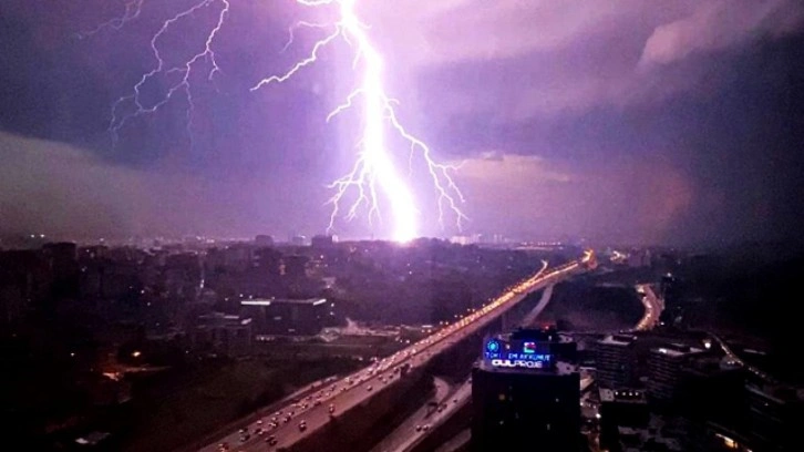 Kadıköy'de yoğun yağmur yağışı sonucu bir apartmanın çatısına büyük bir gürültüyle düştü. Yaşanılan olayın ardından apartmanın çatısına alev alev yandı.
