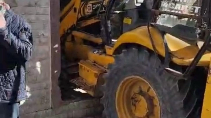 Aile bireylerinin kahvaltı yaptığı sırada iş makinesinin büyük gürültüyle duvarı yıkarak salona girdiği kazada, iş makinesi ile duvar arasına sıkışan 45 yaşındaki Nuriye O. hafif yaralandı.