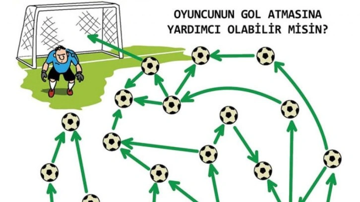 Bir oyuncunun kaleye şut atmadan önce düşündüğü tüm olasılıkları gösteren yukarıdaki görsel aslında bir zihin alıştırmasıdır. Kaleye isabetli şut çekme oyunu, pratik düşünmenizi ve bunu olabilecek en hızlı şekilde yapmanızı sağlar. Eğer hızlı olmazsanız top rakip oyuncunun eline geçerek puanı o kazanabilir.