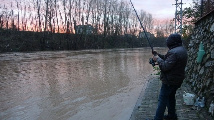Günlerdir sağanak yağışın etkili olduğu Bartın'da, yüksek kesimlere yağan karın da erimesi ile Bartın Irmağı taştı. Çağlayan piknik alanı önündeki asfalt yol su altında kalırken, bir vatandaş kaldırımdan asfaltta attığı olta ile balık avladı.